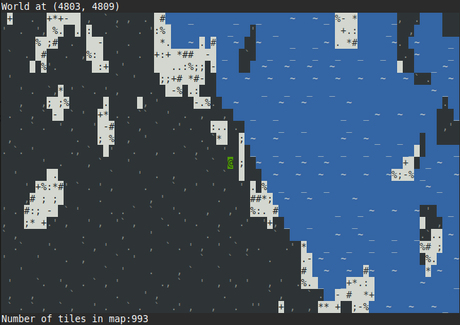 The "dirt" chars on the empty tiles/rocks and the waves are generated procedurally in a deterministic way on the client side (instead of storing them in DB).
